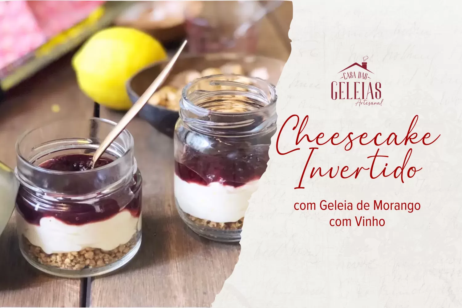 - Finalize com uma camada generosa de geleia de frutas vermelhas ou morango com vinho da Casa das Geleias.
